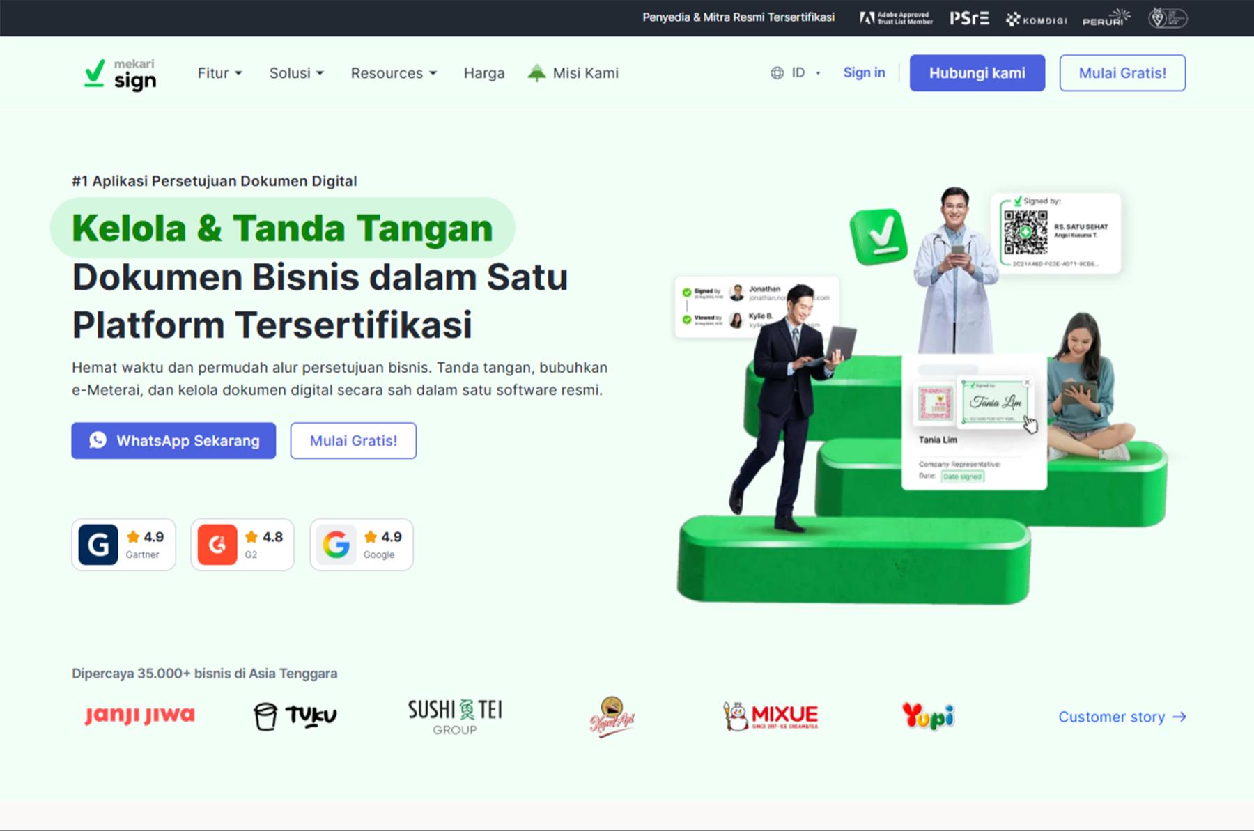 Layanan Utama: Solusi tanda tangan digital bersertifikasi PSrE untuk skala bisnis di Indonesia, termasuk integrasi E-Meterai dan automasi persetujuan dokumen .